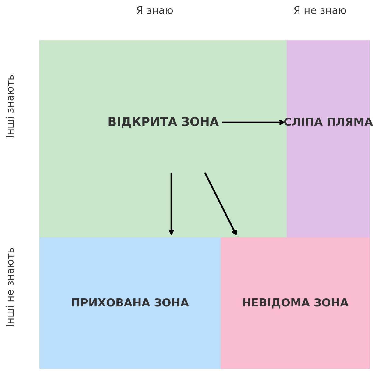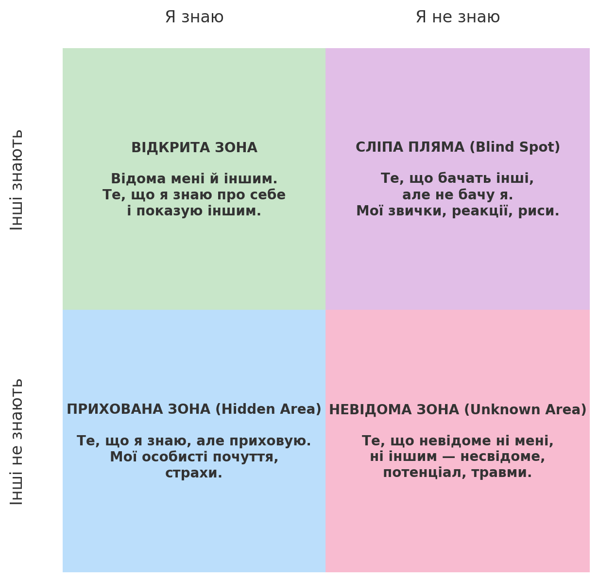 Я не знаю, інші не знають — Невідома зона (те, що невідоме ні мені, ні іншим: несвідоме, потенціал, травми)